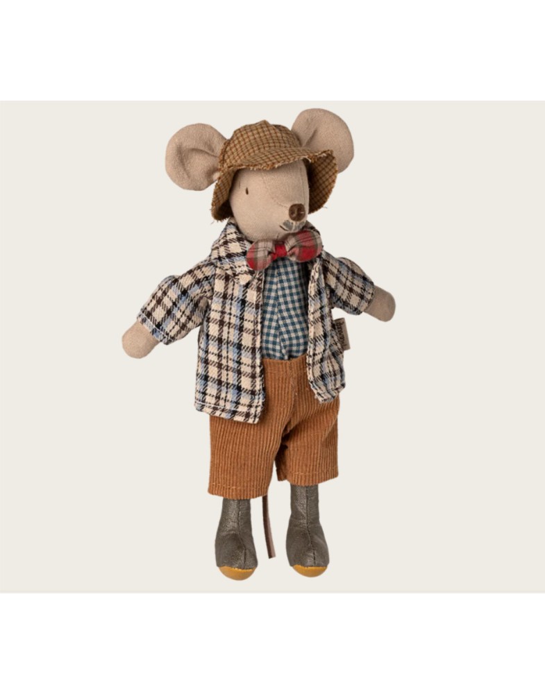 Der Großvater sieht sowohl weise als auch nett aus - er trägt Gummistiefel, Schmetterling, Hose und Jacke und ist immer bereit, dich mit all seinen vielen Geschichten aufzuheitern. Die Maus hat Magnete in ihren Händen.