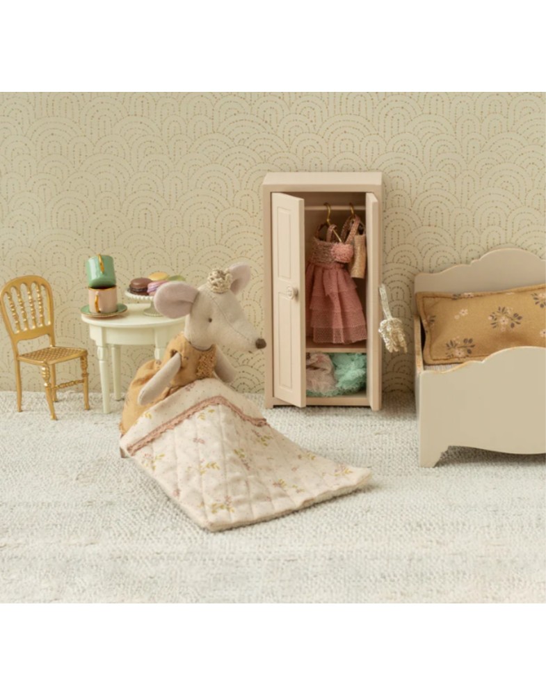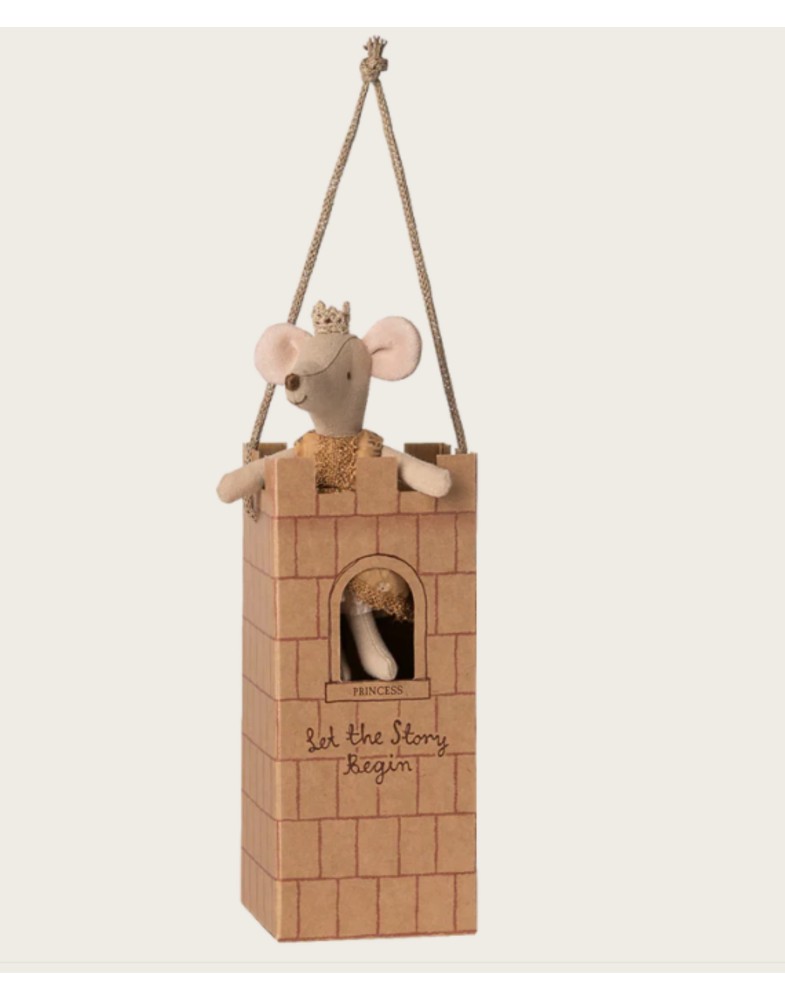 Eine echte Prinzessinnenmaus in großer Schwestergröße. Sie trägt ihr bestes Kleid mit schönen Details und einer goldenen Krone. Sie fügt sich perfekt in das Maileg Schloss ein.