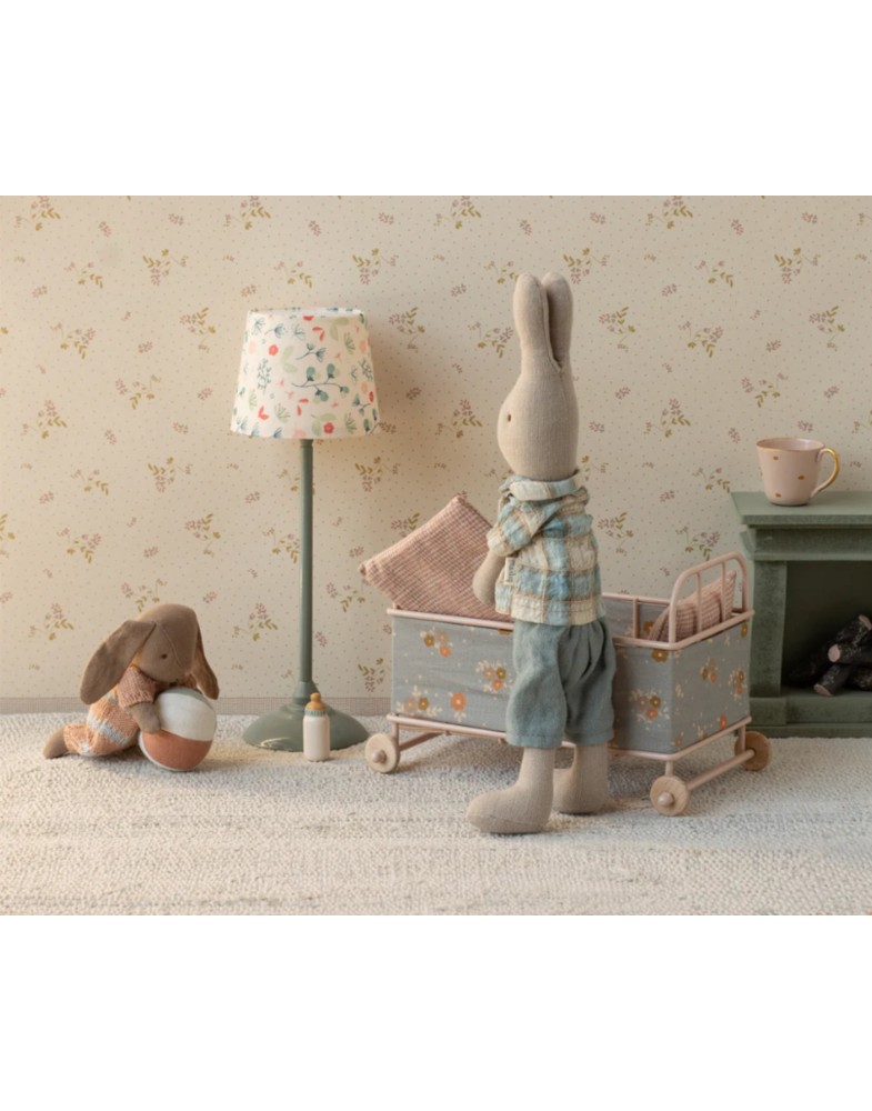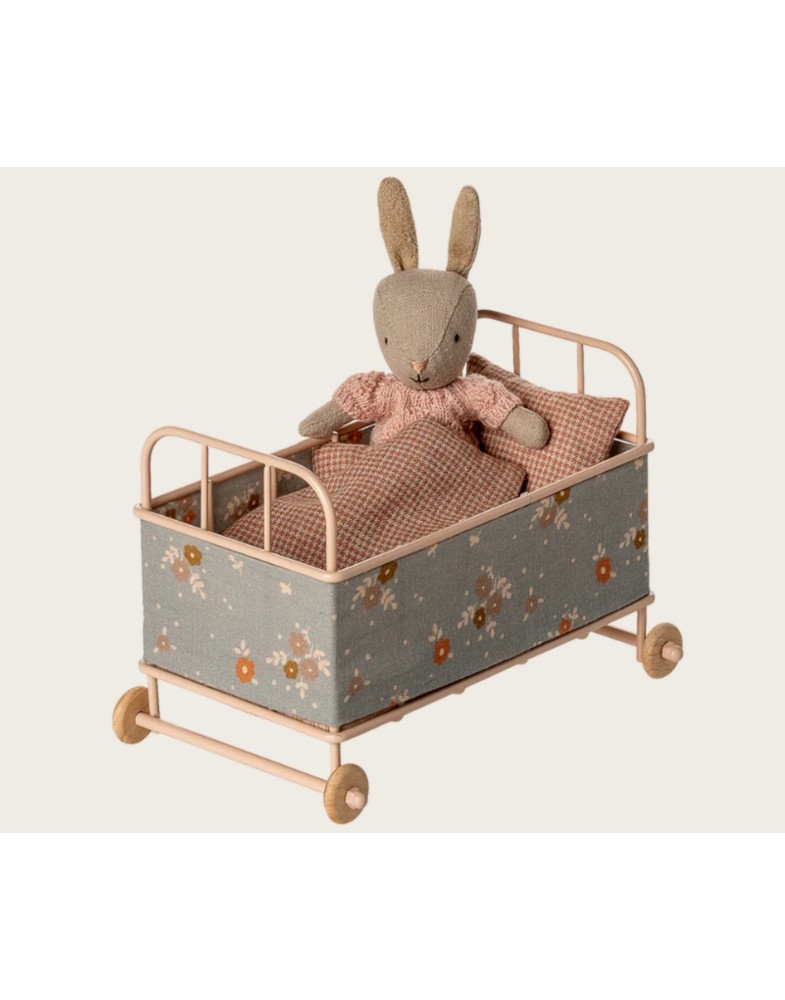 Es ist ein gemütliches Kinderbett aus Metall, mit einer Matratze, einer Decke und einem Kissen. Es hat einen Stoffumzug, um sicherzustellen, dass die Kleinen schlafen können. Hier passen sowohl Freunde in Mikrogröße als auch die kleinen Mäuse.