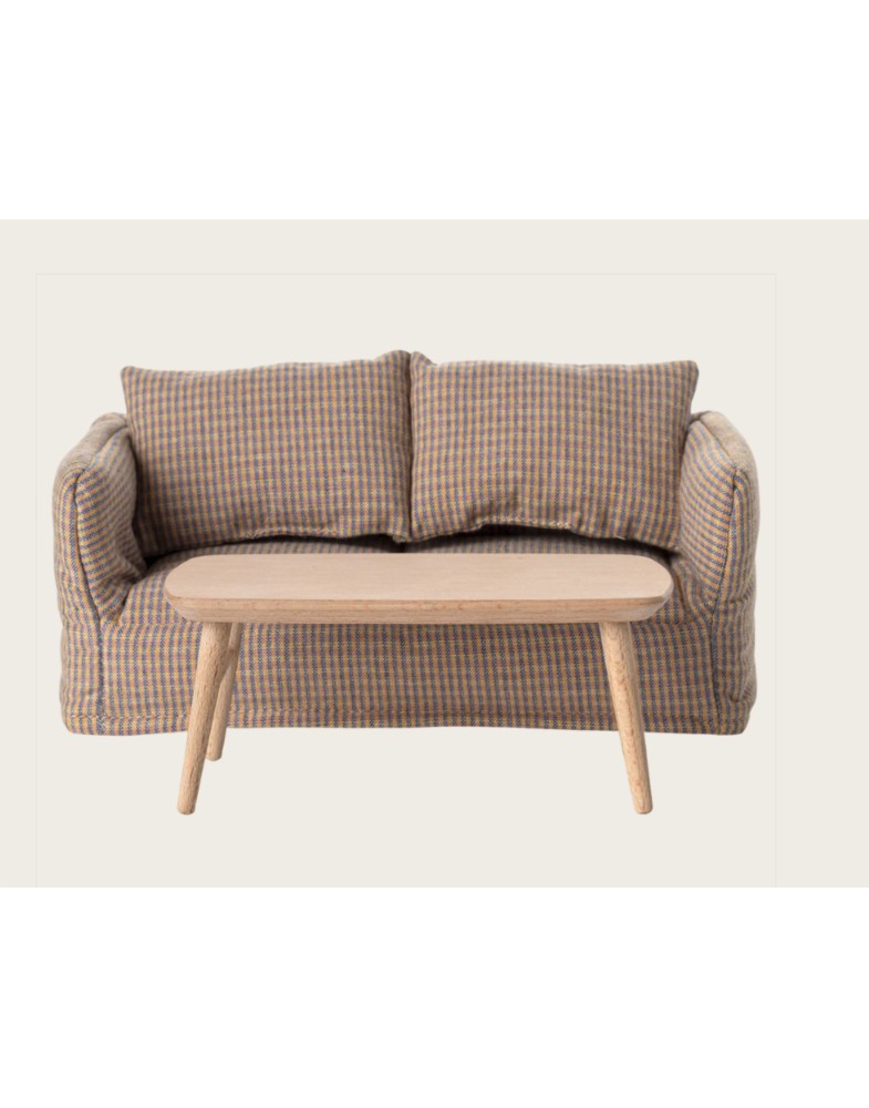Ein Couchtisch aus Holz, der perfekt für Sofas in Mausgröße geeignet ist. Dieser Tisch kann im Mauseloch Haus platz finden und ist mit Sicherheit der perfekte Ort für gemütliche Tee- oder Kaffeekränzchen.
